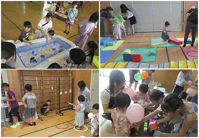 「くじ引きの参加賞は本物の風船をあげるの♪」「折り紙の金魚は磁石で魚釣りしよう」「ボウリングはピンが全部倒れるまで何回でもOKだよ」司会者担当は、おまつりの流れや台詞を台本に書き起こし練習を重ねました。