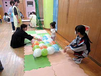 その後、児童館の周囲にある用水路を観察したところ、ドジョウとアメンボ、カエル、ザリガニを発見しました。見つけた子どもたちからは歓声があがり、つかまえたドジョウは児童館の水槽で飼っています。