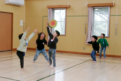 「サッチー」とはサッカーとドッチビーを合体した遊びです。当日は小学校が授業参観ということもあり参加者がちょっと少なめの活動になりましたが、それでも大盛り上がりとなりました。はじめはドキドキ投げ方も分からなかった1年生も後半は上級生に負けないように上手に投げる、取るを繰り返すようになりました。そこで最後は鬼ごっこ?リレー?遊びのトム・ジェリに職員も参加。逃げる、逃げる、逃げる、走る、走る、走る!!必死に走りましたが結果は引き分け!!ちょっと疲れましたが、楽しい時間を過ごすことができました。