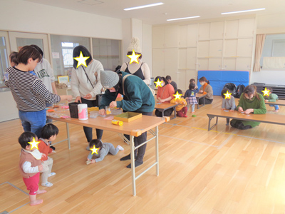 2024/03/04湯元児童館にけん玉ブームが到来し、みんなでけん玉に夢中になっています。