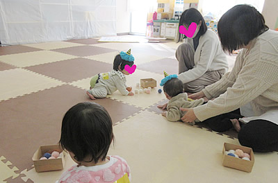 2024/01/16前日からの寒波で雪が積もった寒い日にもかかわらず、乳児親子4組が来館してくださいました。