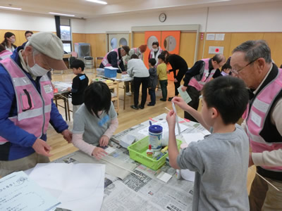 本物のお餅の柔らかい感触を楽しむ子、ベタベタ手につくのが苦手で1回毎にウエットティッシュで手を拭く子と反応は様々でしたが、見た目も華やかな活動に参加者はもちろん職員も楽しむことができました。子どもたちが真剣に飾り付けている姿はとても可愛らしく、母親たちはその姿をスマートフォンで撮影しながら自身も飾りつけを頑張ってくれました。