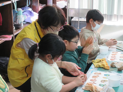 マジシャンはカトリーヌ先生。魔女であり、大道芸人であり、時には児童館職員にも変身できるスーパーウーマンです。導入はお正月遊びのミニ獅子舞でした。元気に手をあげた1年生の男子がカトリーヌ先生と共に舞いました。その後はコップ、封筒、折り紙のマジックと続き、子どもたちもお父さん、お母さんからも大歓声があがりました。マジックショーの最後は全員参加でのペンシルバルーンアートでした。1人1人の希望を聞いて、カトリーヌ先生がウサギやハートや剣を一緒に作ってプレゼントしてくれました。マジックショーの素敵な思い出とバルーンを胸に、帰途につく20人の笑顔がはじけました。