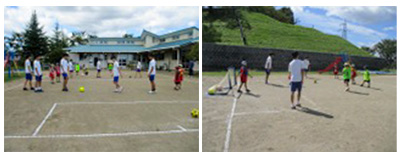 クラシック音楽や流行りの曲に合わせて身体を動かし、ステップを踏みます。