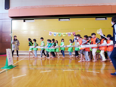 最後は「綱引き」残っていた力を全部出しきって引っ張りました。