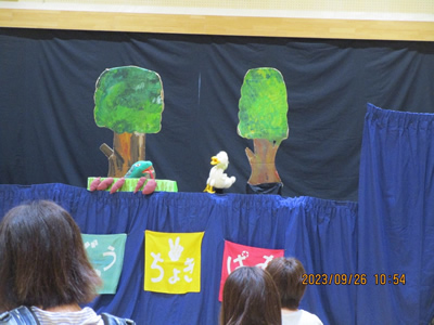 2023/09/29「なかよしタイム」はおはなしボランティア「なかよし」の皆さんによる絵本の読み聞かせや紙芝居、パネルシアターや手遊びなどをとおして、親子のふれあいを楽しむことを目的に行っています。