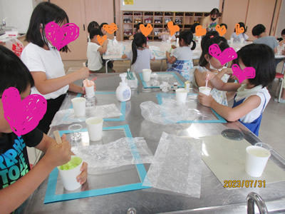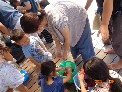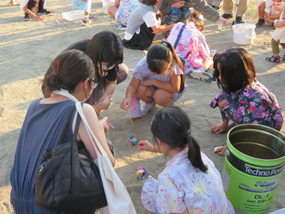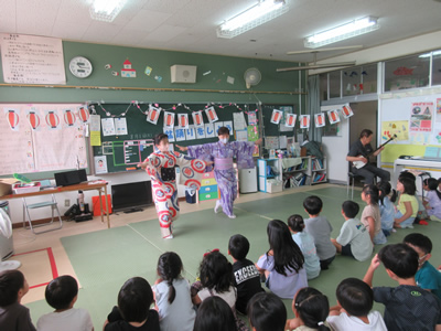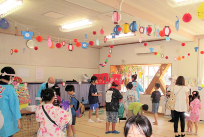 最後は、お手製のうちわを持って、みんなで大きな輪を作り、楽しく踊ることができました。