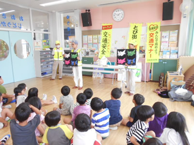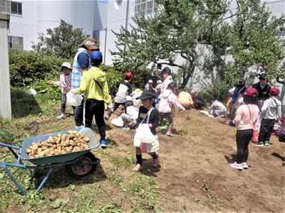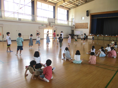 最後に全員に自然の材料で作られたトンボや風車のプレゼントを頂き、大満足の笑顔で帰りました。