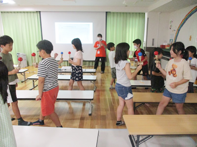 2023/07/29ネイチャークラブJ&Bの皆さんのご指導で小学生が割箸鉄砲を作ってみました。