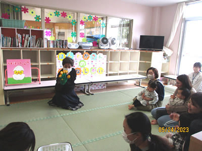 2023/05/25今年度初めての通常開催となった乳幼児親子向け行事ありんこクラブは、「しゃぼん玉で遊ぼう!」と題し、屋内での工作と屋外でのしゃぼん玉遊びの二部構成にて行いました。