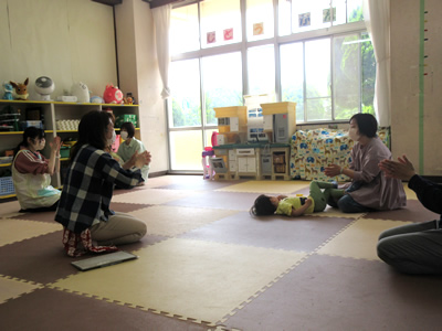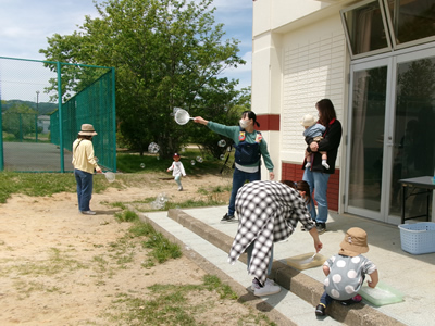 乳児も日光を受けてきらきら光るしゃぼん玉を眺めたり、捕まえたりしようとするなど、赤ちゃんから大人まで楽しめる行事になりました。