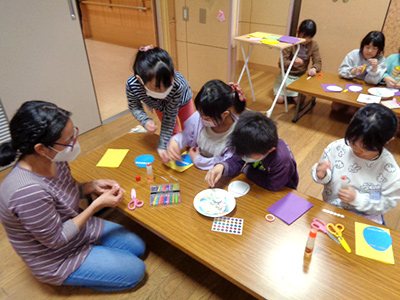 2023/04/27令和5年4月27日(木)、虹の丘児童センター館庭で、参加児童27名とシニアクラブ7名のみなさんで楽しくグラウンドゴルフをしました。