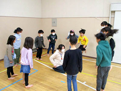 初めはできなかった子も繰り返し挑戦するうちに跳べるようになり、みんなで喜びを共有し大変な盛り上がりとなりました。