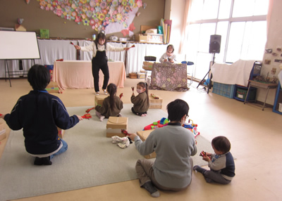 始めに一人ずつお名前を呼ぶと、お返事の代わりに手を上げたり振り向いたりと、それぞれの月齢に応じた反応が可愛らしく微笑ましい姿が見られました。