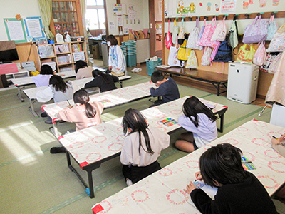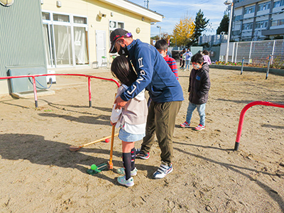 身体をたくさん動かしたためだんだん熱くなり、途中で上着を脱いだり水分補給をしたりする姿も見られました。