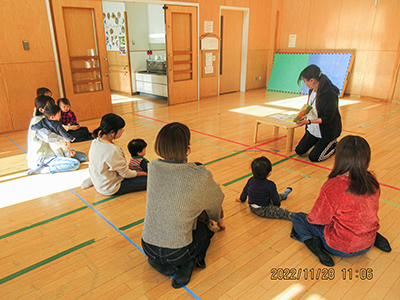 2022/11/29フィットネスインストラクターの金森千穂先生をお招きし、乳幼児親子を対象に「親子ビクス」を行いました。
