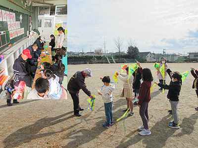 子供たちの作った凧が大空に悠々と舞い、「仙台凧の会の皆さんに教えてもらって、みんなの凧が高くあがることができました!」等の感想を聞くことができました。