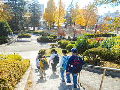 2022/11/12秋晴れの土曜日。絶好の遠足日和の中、元気よく榴岡公園に出発です!