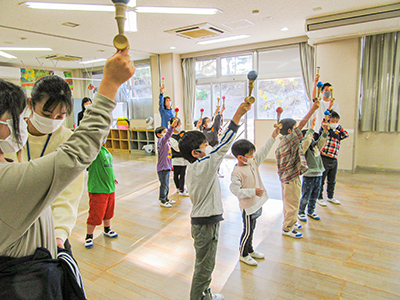 ランチ後は近くのアスレチック公園で鬼ごっこ。知らない子と友達になって盛り上がったところで帰る時間…帰り道でも疲れるどころか、ますます元気いっぱい!最後まで笑顔いっぱいの楽しい遠足でした♪
