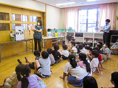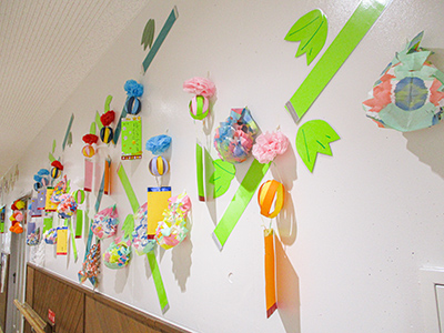 牛乳パックを材料にして作った3枚のパズル台紙に、2種類の折り紙を決まった枚数貼り付けて、それらを組み合わせたら完成です。本館では最初に2年生が作り、その後に1年生が作ったのですが、2年生がキッズリーダーとして1年生のお手伝いをしてくれました。折り紙を貼る場所を教えてあげたり、のりを付けるのを手伝ってあげたり、優しく頼もしい2年生の姿がたくさん見られて嬉しく感じました。