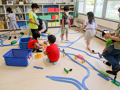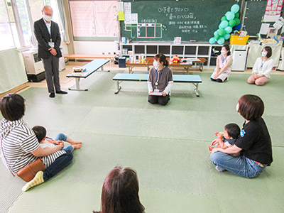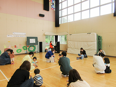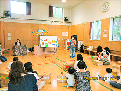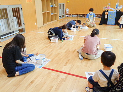 七夕の由来が分かったところで、次に短冊を作りました。「何をお願いしようか?」親子で相談しながら書いた願いは、「毎日元気でにこにこすごせますように!」「ごはんをいっぱい食べて、大きくなりますように!」などなど。短冊の上に、お母さんが描いたアンパンマンを付けたら、元気100倍!素敵な短冊ができました。それぞれの短冊を手に、嬉しそうに親子で眺めていました。
