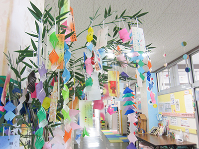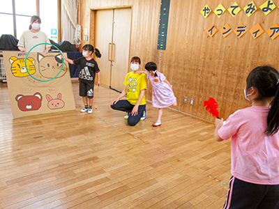 遊びのコーナーでは、すずらんテープを細かく切った「はなびらあそび」が盛り上がりを見せて、何回も遊びにくる子がいて楽しんでいました。