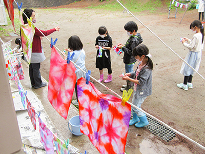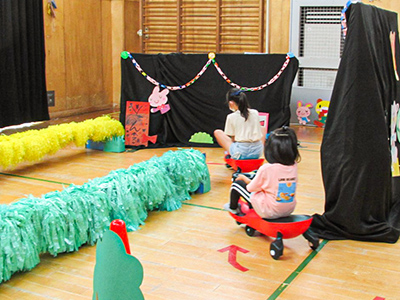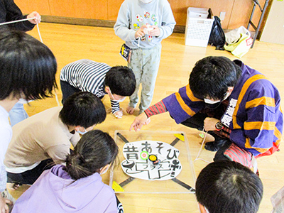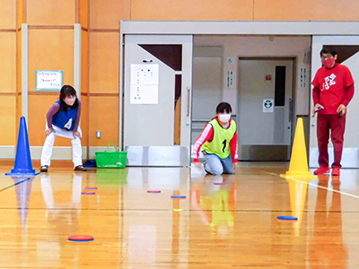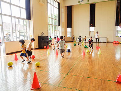 最後はビブスをつけてのチーム戦です。どちらがたくさんゴールに入れられるか、ボールを必死に追いかけました。運動が苦手だったお友だちも「楽しかった!またやりたい」と、笑顔でお話ししてくれて、参加したみんなが大満足の活動になりました。