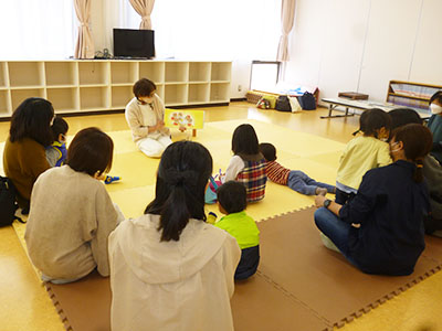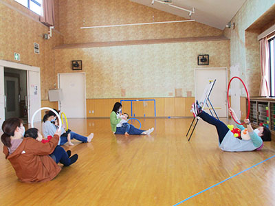 体操や手遊び、親子ふれあい遊びや季節の遊びを楽しみます。