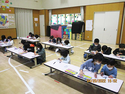 お気に入りの本を写したり、オリジナルの下絵で挑戦する子どももいて、個性が光りました。