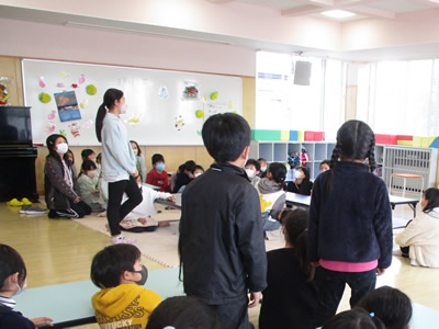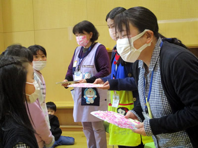 最後に感謝の気持ちを込めて、何度も練習してきた「花は咲く」を歌って先生方を送りました。これから色とりどりの花を咲かせていく子どもたちの成長を楽しみに、児童館に遊びに来てくださいね。