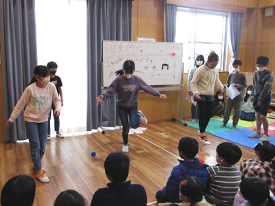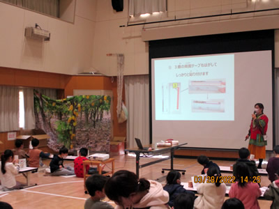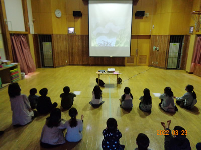 2022/03/29令和3年度最後のチャレンジクラブは、学年ごとに分かれ、感染対策に配慮しながら、ゲーム遊びや大きなスクリーンでの映画鑑賞を楽しみました。