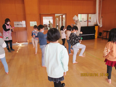 これからしたい遊びは、外遊びが第1位。あたたかな春の日差しの中、元気よく遊んでいきたいですね。地域のボランティアさんもご参観いただき、賑やかな時間となりました。