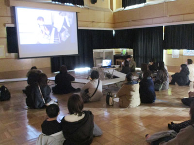 また、今回館長先生が演奏に使ったギターは「サイレントギター」といって、形がギターの枠組みのみ、中は空洞という不思議なギターです。音は普通に弾くと小さい音ですが、アンプにつないで弾くと、大きな音が出ます。あまり目にしたことがない、珍しいギターを見ながら楽しんだ午後のひとときでした。