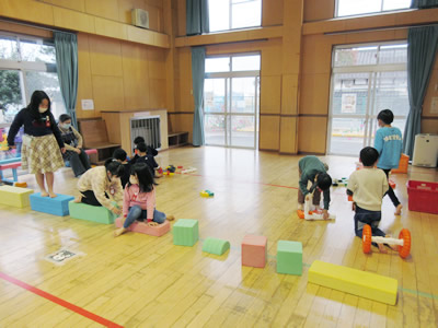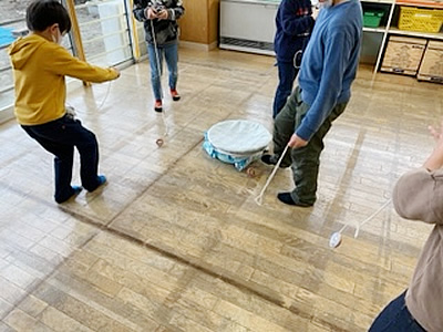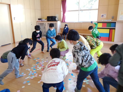 3日間、毎日遊び方が変わり、その都度楽しそうに取り組む子どもたち。なかでも一番盛り上がったのは2日目の新聞紙合戦です。新聞紙を丸め、雪合戦のように相手の陣地に投げ、新聞紙玉が陣地に少なかったチームの勝利です。