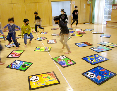 2022/01/04月ごとにテーマを決めて一つのことにみんなで取り組む「〇〇強化月間!」。今月は「むかしあそび」がテーマです。コマやけん玉、お手玉など日によっていろいろなあそびにチャレンジしています。冬休みのある日、児童クラブのみんなで大型かるた取りを行いました!遊戯室にカラフルな大型かるたを並べると、子ども達は「何やるの?」と次々に集まってきました。ルールを説明し、いざスタート!はじめは絵札の枚数も多く、「どこにあるの?!」とキョロキョロ辺りを見渡している子が多くいましたが、慣れてきた頃には「ハイっ!」の声と共に目当ての絵札にまっしぐら!記憶力と瞬発力、そして運が必要なゲームでした。1位の子は9枚も取りました!