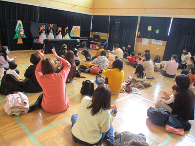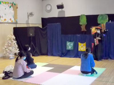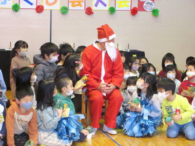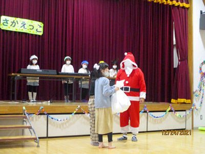 2021/12/24冬休み初日、子供たちは朝からそわそわ。さかえっこ発表会の本番です。自分の得意なことを皆の前で発表するため、当日まで練習を重ねてきました。演目は、マジック、けん玉、ディアボロに柔軟体操、楽器演奏等々、バラエティに富んでいます。オープニングはダンスクラブ。元気いっぱいの「よっちょれ」に、会場も一気に盛り上がります。緊張しながらも堂々と披露する姿を見詰める、観客の友達の視線も真剣です。一つ一つの演技が終わる度に、大きな拍手が起こりました。最後には、サンタさんも登場!発表、応援、どちらも頑張った子供たちに、すてきなプレゼントを持って来てくれました。今年を締めくくる、笑顔いっぱいの発表会となりました。