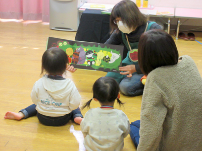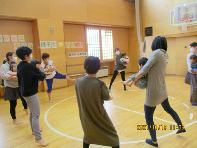 2021/11/1911月ののびのびひろばは、幼児親子さんを対象に「おはなし会&ミニ運動会」を開催しました。運動会はエビカニクスの体操からスタートです。軽快な音楽に合わせて親子で元気一杯に体操を楽しみました。次に紅白玉入れをしました。初めて玉入れをする幼児さんもいましたが、ママと協力して一生懸命頑張りました。最後はトンネルなどのサーキット遊びに挑戦して、ピカピカの金メダルをもらって終わりました。少し休憩をした後は読み聞かせボランティアの「おはなしやま」さんによる楽しいおはなし会がありました。仕掛け絵本や紙芝居、手遊びなど盛りだくさんの内容でした。読み聞かせに耳を傾けながら親子でゆったりとしたひとときを過ごしました。