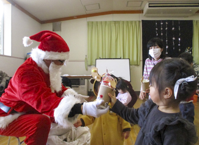 最後にはサンタさんが登場!プレゼントを受け取ったこどもたちは、満面の笑みを浮かべていました。