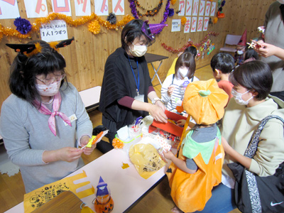 2021/10/30待ちに待った「ちびっこちゃんハロウィン」、いよいよスタートです。会場の遊戯室には可愛い仮装をしたちびっこちゃんが続々と集まってきました。いつもと違う雰囲気に、みんなの気持ちは徐々に高まってきます。会場には、遊びのコーナーが6つ、工作コーナーが3つ、フォトコーナーが1つと、充実のコンテンツです。工作で作ったカボチャパンツとカボチャのお面を身に付け、各コーナーを回る子どもの姿が可愛らしく、印象的でした。特別企画のSHIHOさんのフォトコーナーも大盛況で、多くの素敵な家族が、記念写真を撮影していました。あっという間に閉会の時間になりましたが、帰っていく子どもたちの小さな手には、児童クラブの子どもたちが作ったハロウィンバージョンの折り紙の景品や子育て支援クラブからのプレゼントが、しっかりと握られていました。