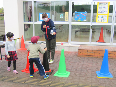 2021/10/0910月9日(土)に「虹サタスペシャル~虹の呼吸、拾の型~」を開催しました。当日はあいにくの雨となりましたが、第1部・第2部とも申し込みをしたほとんどの方が参加し、楽しく遊んで行かれました。遊びのコーナーでは「だるま落とし」や「キックターゲット」などで遊び、工作コーナーでは「革のネームタグ」や「くるみボタン」をつくって楽しみました。また、おたのしみコーナーでは「とすけ」をして景品をもらったり、子どもたちがつくった素敵なアクセサリーなどをもらったりして子どもたちは「楽しかった」「おもしろかった」などたくさんの声が聞こえてきました。また、子どもスタッフをはじめ児童クラブの保護者の皆様や民生委員児童委員の皆様にサポートをしていただきました。おかげさまで参加者の皆様には楽しんでいただけました。次回も楽しい行事を企画しますので、ぜひ遊びに来てください。