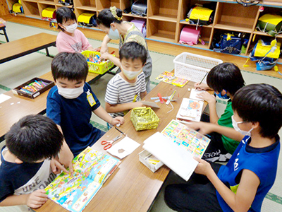2021/09/25コロナのまん延防止等重点措置の適用となった九月は児童センターの行事も中止となりましたが、児童クラブの子どもたちは毎日元気に、夏から秋へと少しずつ変わっていく季節を楽しみながら過ごしていました。土曜日の児童クラブは登館児童の人数が少なく、にぎやかさには少し欠けますが、人数が少ないことで全員で一つのことができる日でもあります。この日は夏にグリーンカーテンになっていた朝顔の種採りをみんなで一生懸命やりました。大きな種や小さな種、蛾の幼虫がいっしょについていたり…みんな大騒ぎしながらも楽しそうに作業していました。採れた種は十月の『サンちゃんワールド』でおみやげにして配ることにしています。