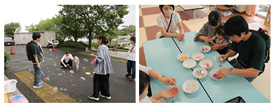 参加者は2組と少ない人数でしたが、お父さんの参加があり、「初めてしゃぼん玉をやりました」と、笑い声あふれるひとときとなりました。
