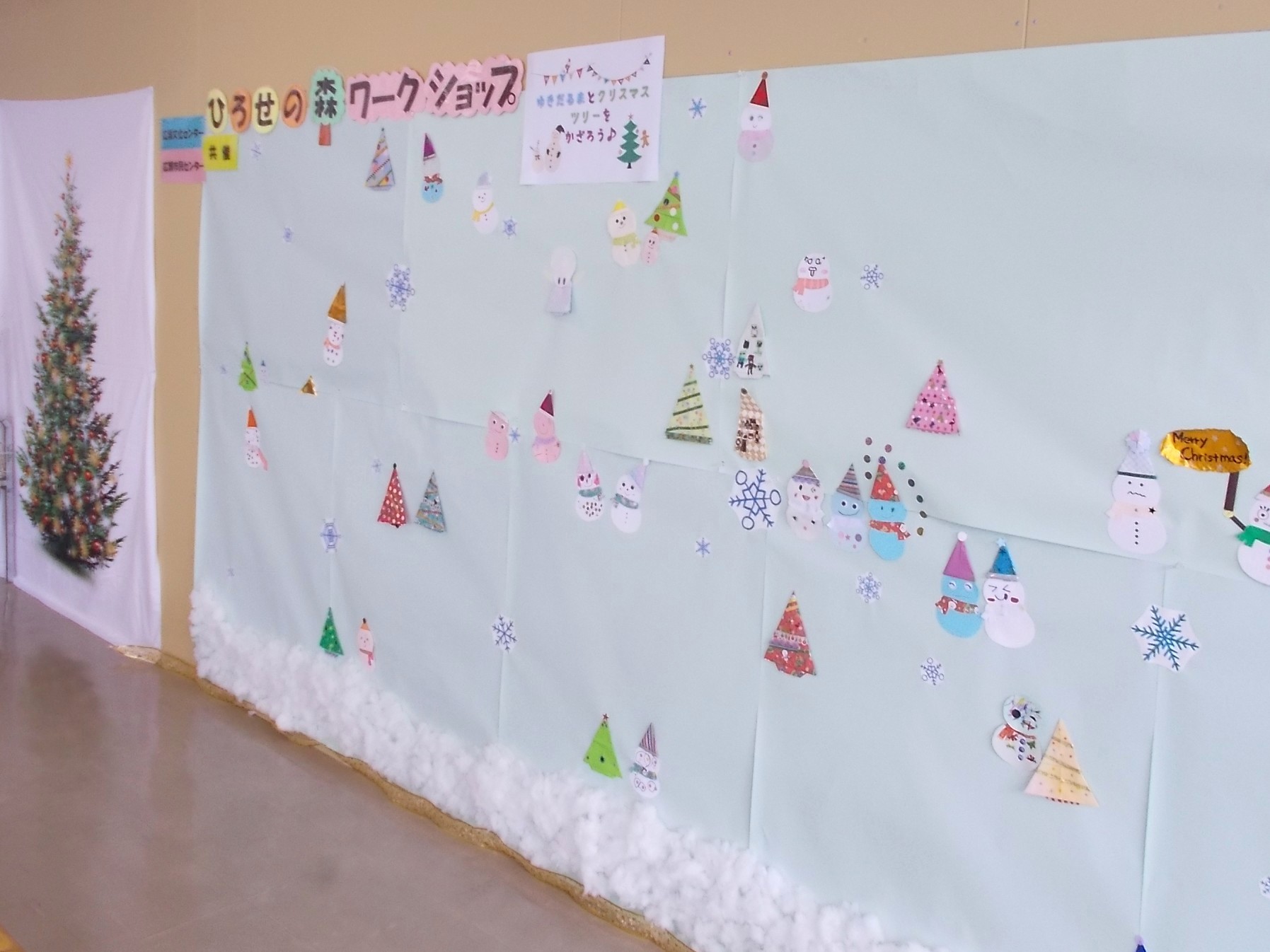 今回はクリスマスにあわせて、12月2日から「ひろせの森ワークショップ~ゆきだるまとクリスマスツリーをかざろう♪~」を1階ロビーにて開催しています。