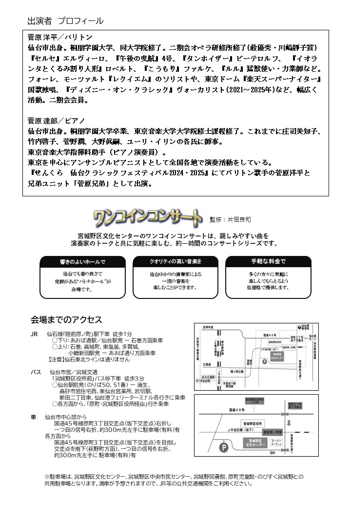 ★出演者:菅原 洋平(バリトン) 菅原 達郎(ピアノ)