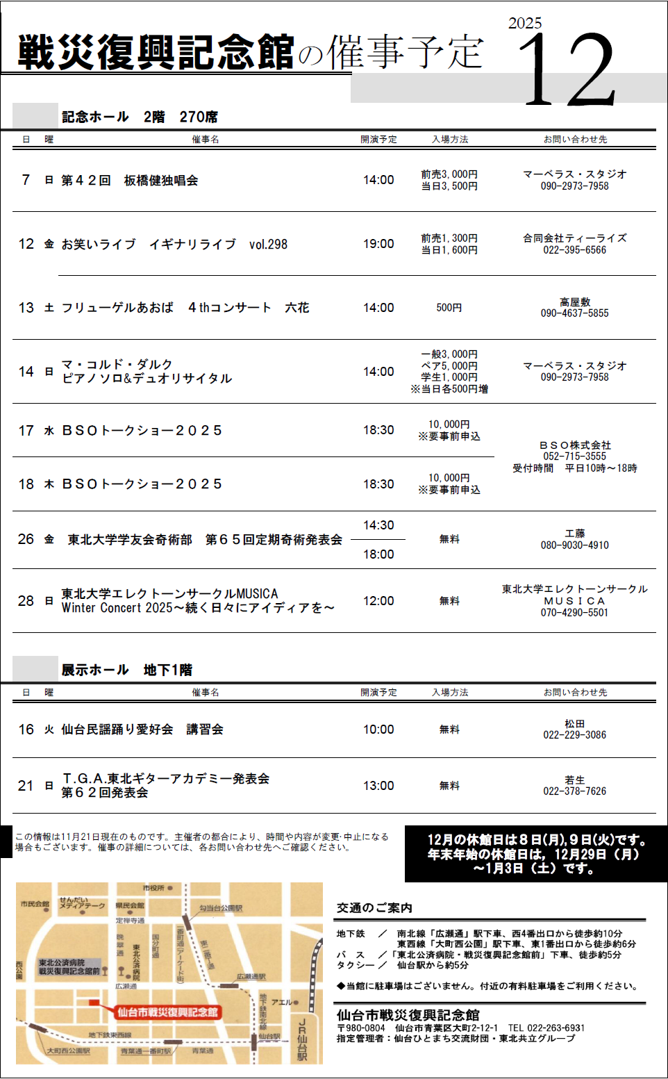 ※令和4年4月1日から仙台市戦災復興記念館は仙台ひとまち交流財団・東北共立グループが運営しております。