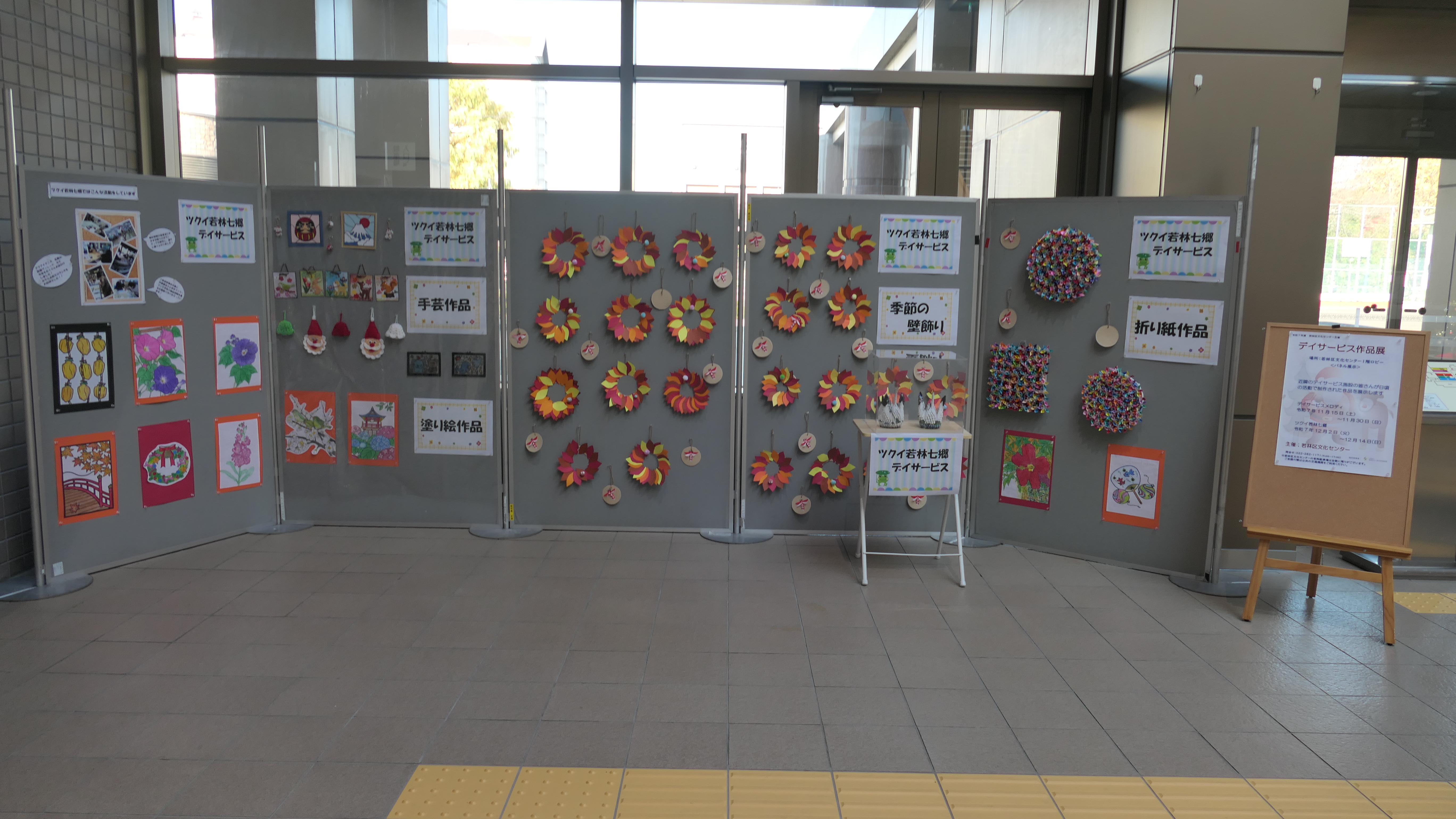 毎年恒例になっている「デイサービスセンター作品展」を、1階ロビーにて開催しています。文化センター近隣のデイサービス施設で活動されている皆さんが、日頃の活動で制作された作品を展示しています。ご来館の際にぜひご覧いただきお楽しみ下さい。