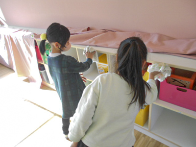 1年間たくさん遊んだ児童センターをみんなで感謝の気持ちを込めてピカピカにします。