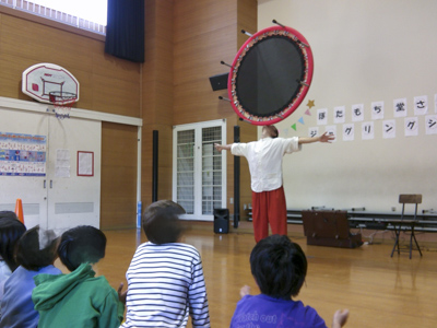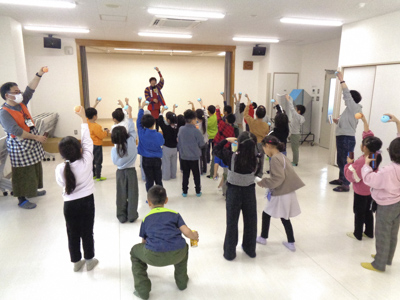 最初に、おてだまを何個も自由自在に操りながら踊る姿に、こども達は一瞬にして魅了されていました。