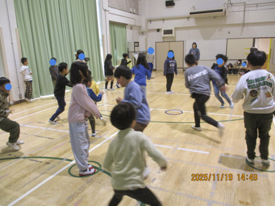 17日には、遠見塚小学校体育館で運動あそびを楽しみました。