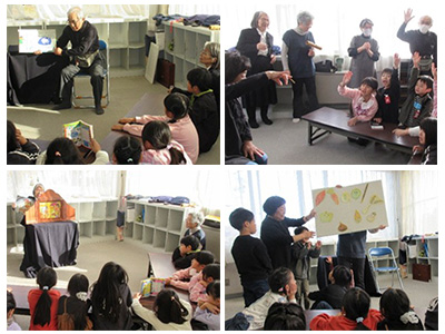 「おはなしもこもこ」の皆さんによる月に一度のおはなし会は、1年生だけのスペシャルタイム!